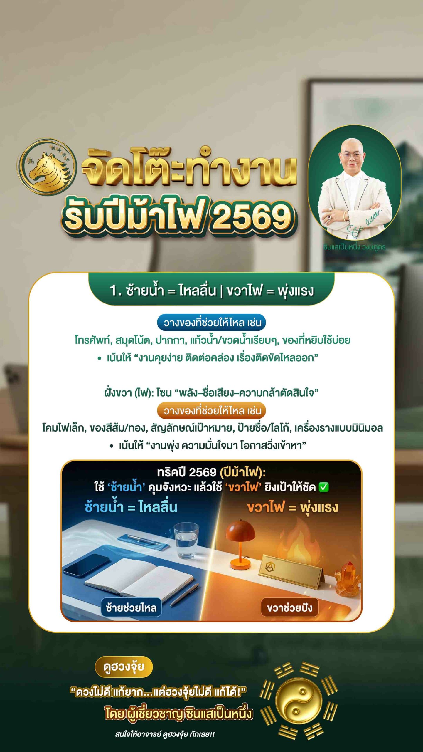 ทริคปี 2569 (ปีม้าไฟ): ไฟแรงอยู่แล้ว ให้ใช้ “ซ้ายน้ำ” คุมจังหวะ แล้วใช้ “ขวาไฟ” ยิงเป้าให้ชัด ✅