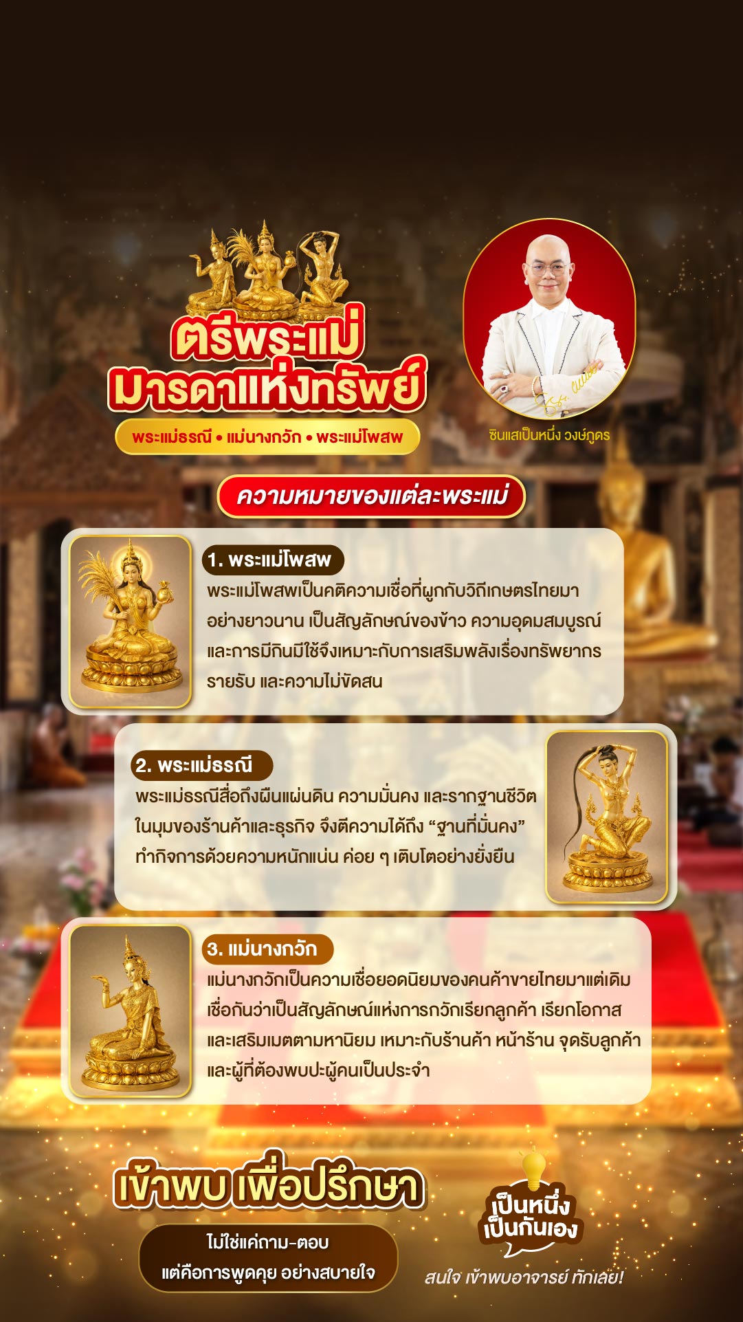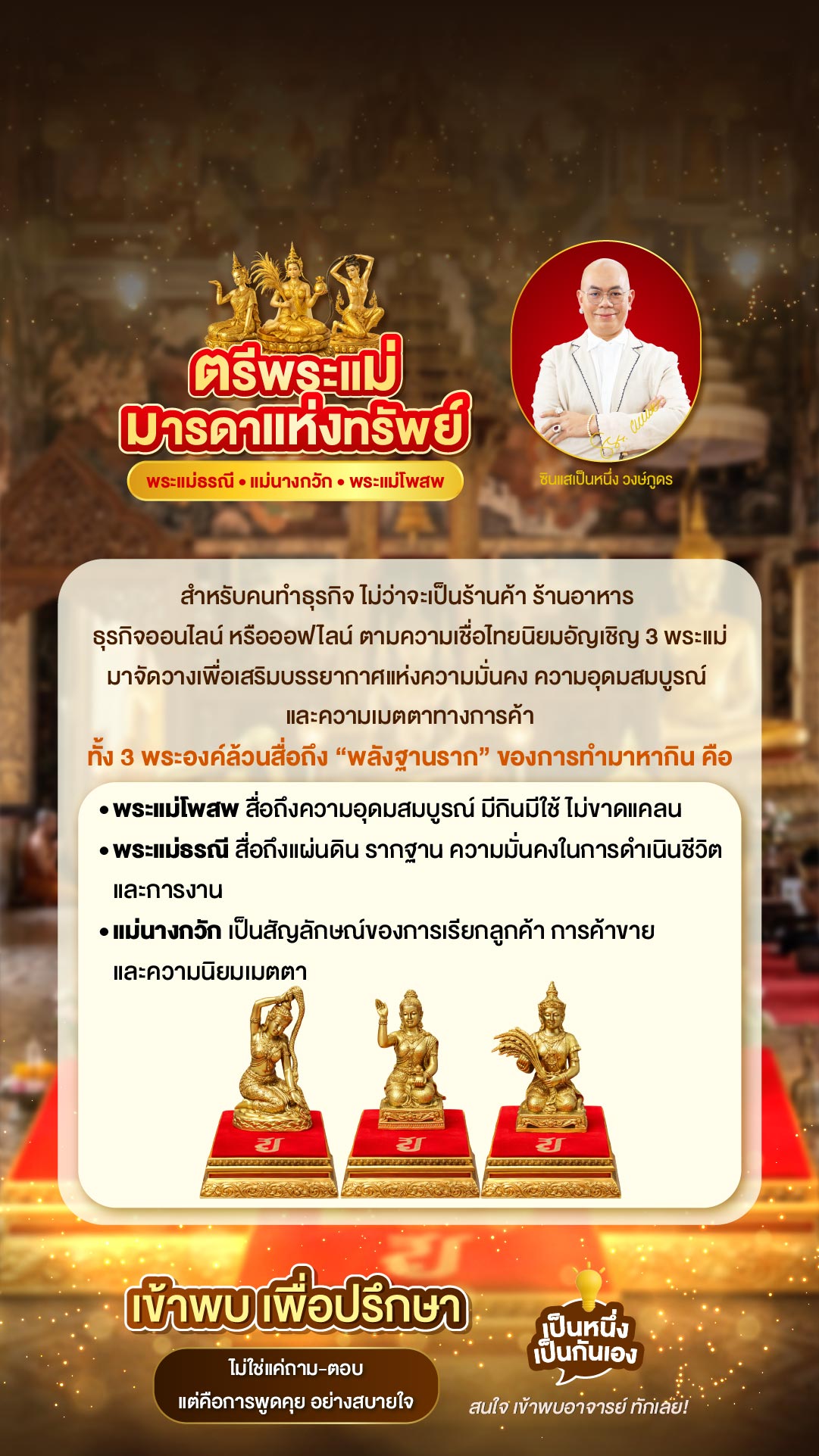 - พระแม่ธรณี สื่อถึงแผ่นดิน รากฐาน ความมั่นคงในการดำเนินชีวิตและการงาน