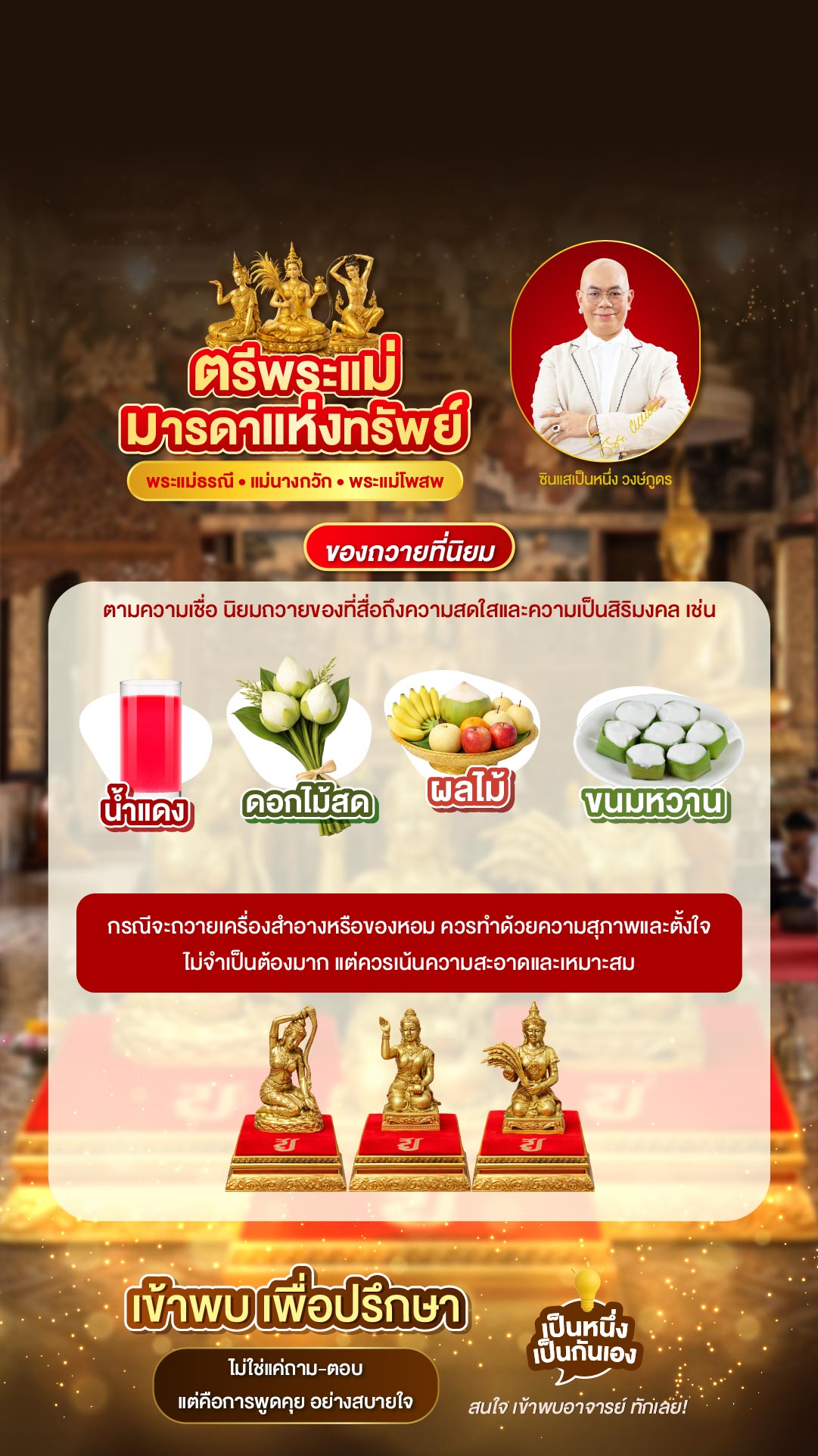 ตามความเชื่อไทยนิยมอัญเชิญ 3 พระแม่ มาจัดวางเพื่อเสริมบรรยากาศ