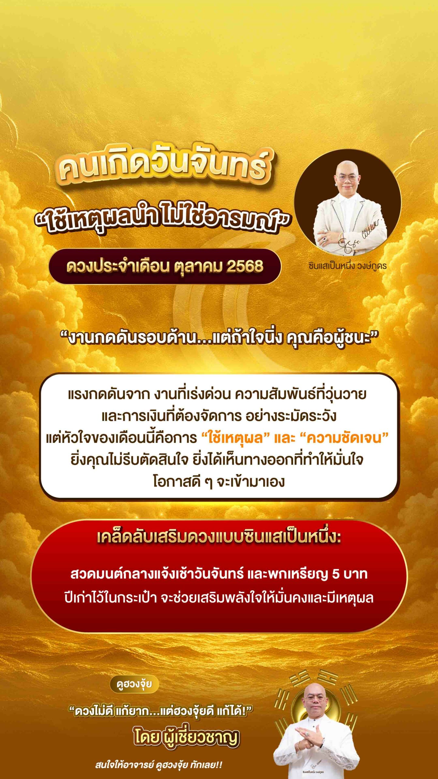 🌕 คนเกิดวันจันทร์ – เดือนตุลาคม 2568