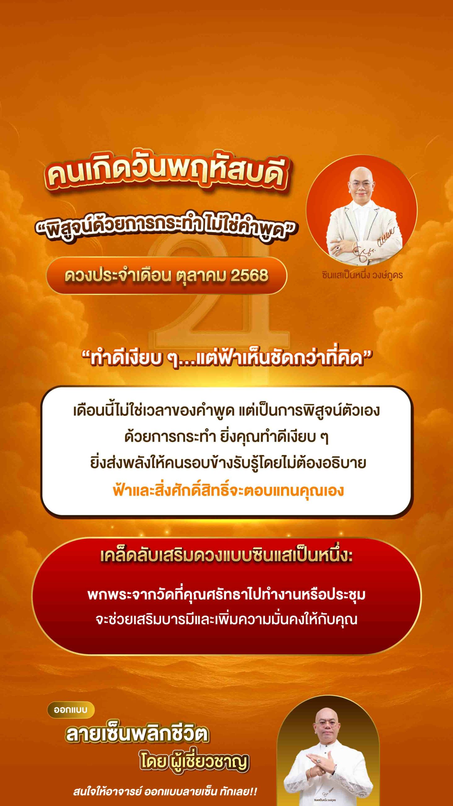 คนเกิดวันพฤหัสบดี – ตุลาคม 2568