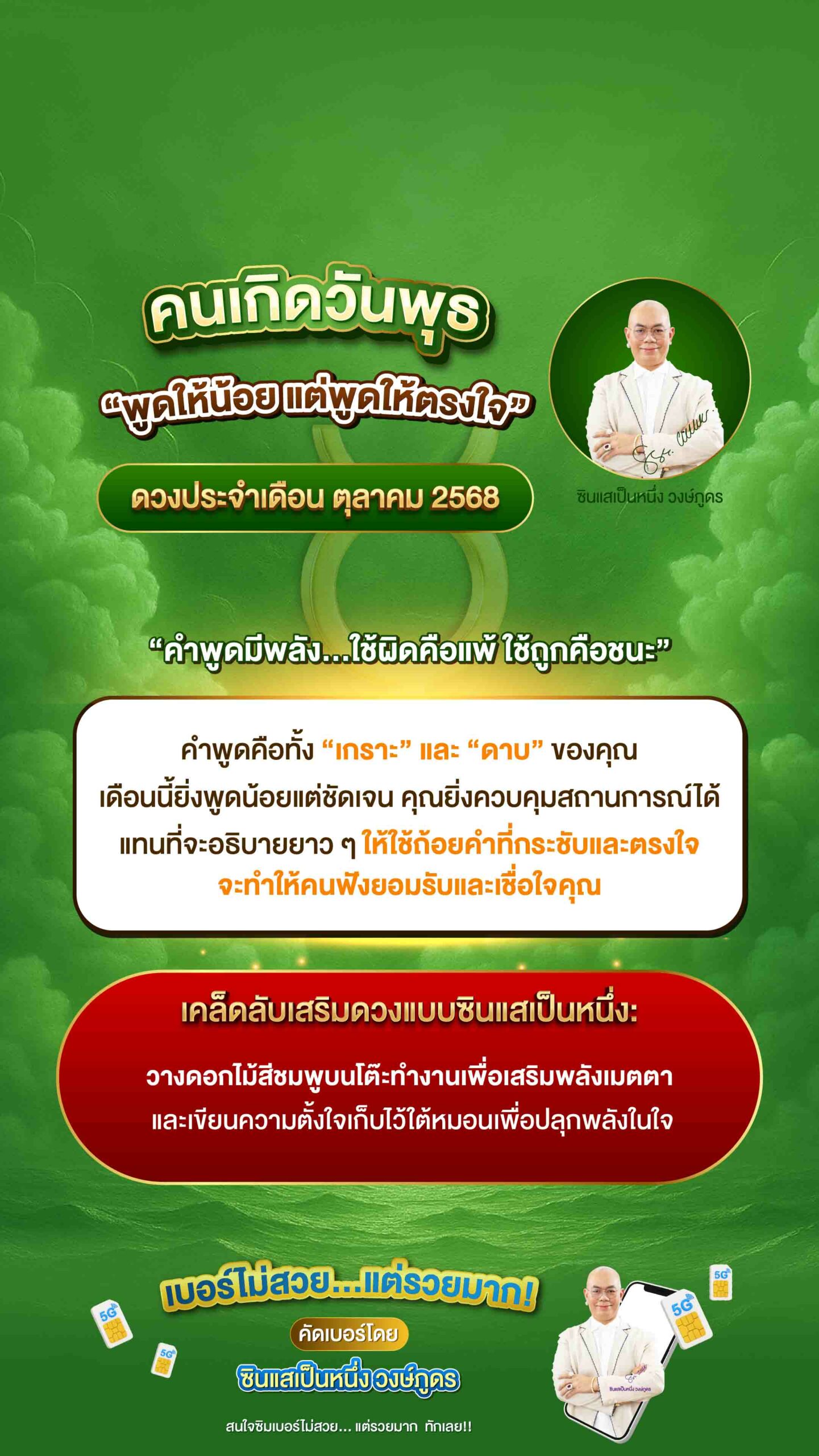 🌕 คนเกิดวันพุธ – เดือนตุลาคม 2568