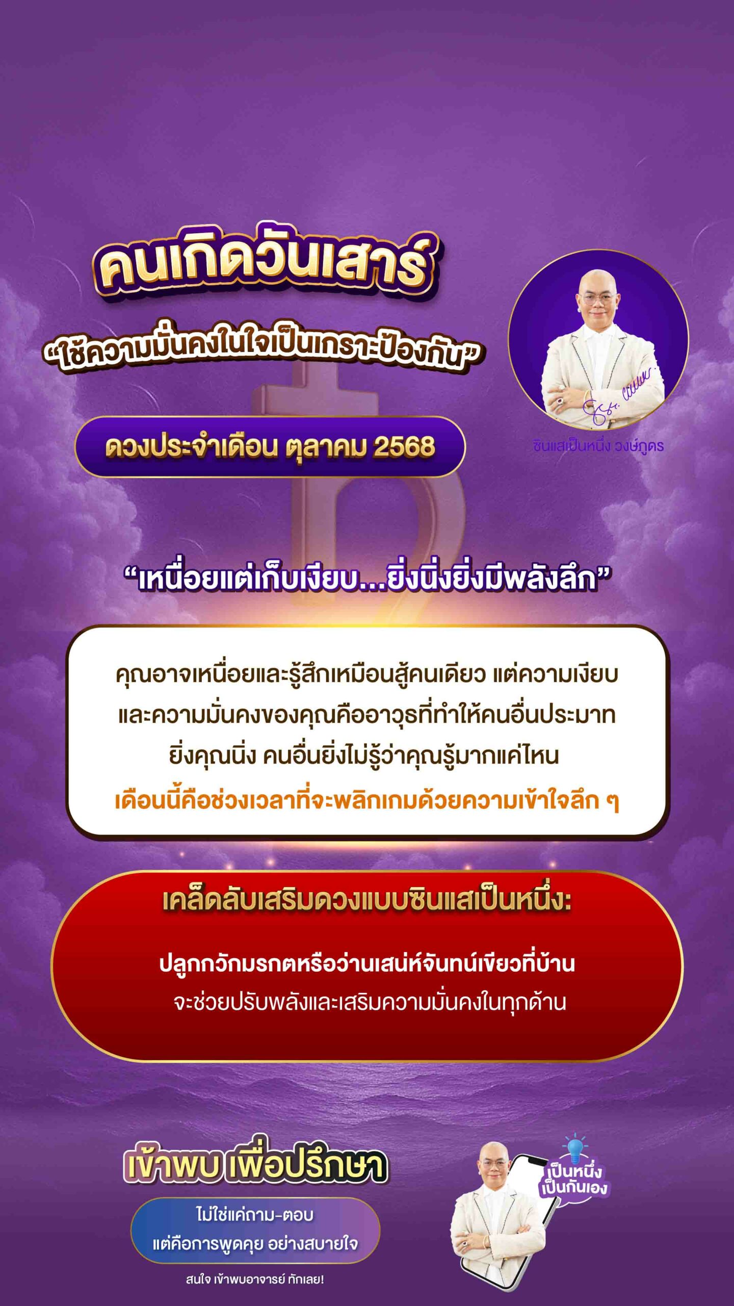 🌕 คนเกิดวันเสาร์ – เดือนตุลาคม 2568