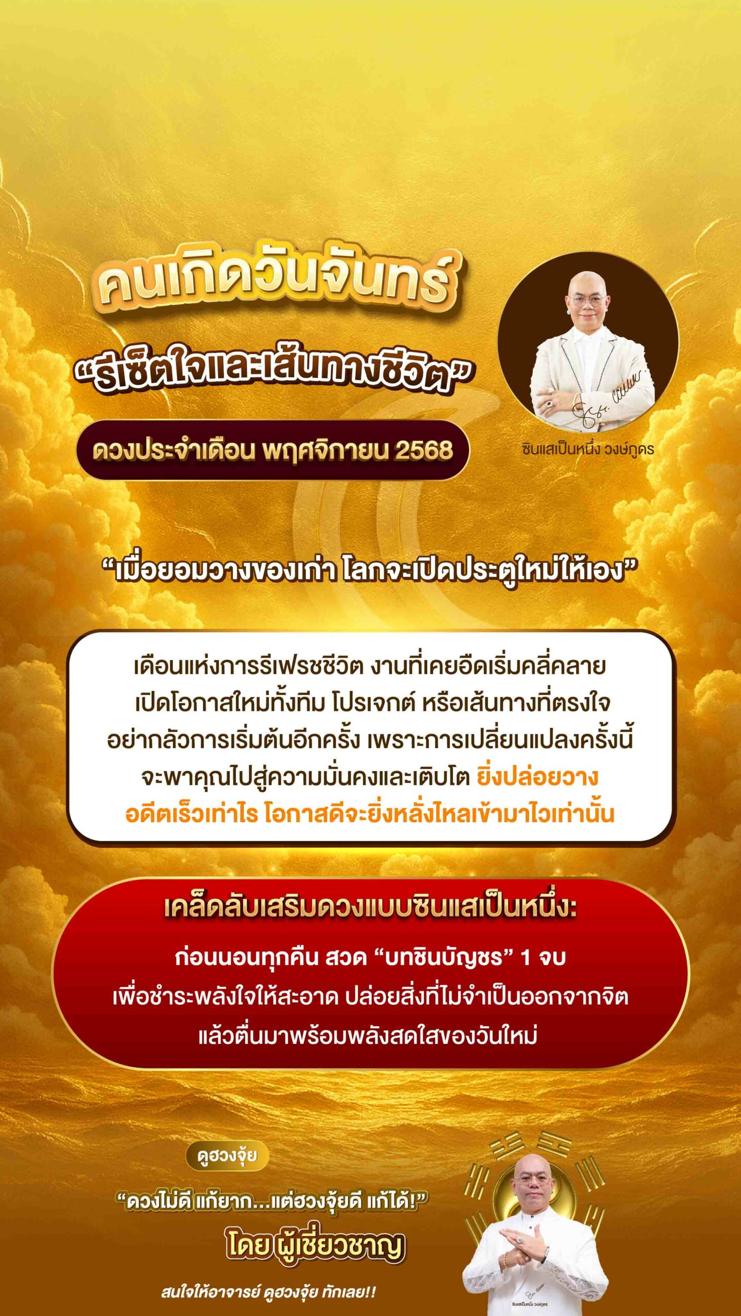คนเกิดวันจันทร์ – เดือนพฤศจิกายน 2568