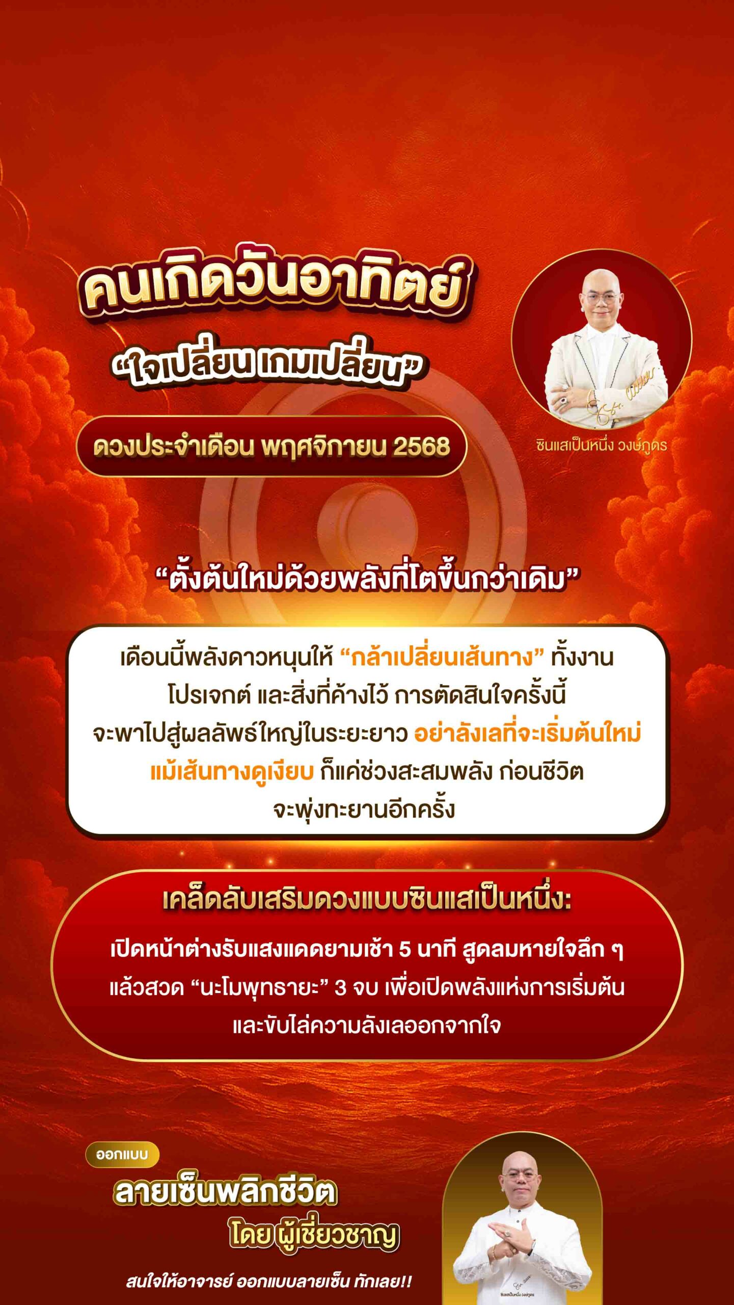 ☀️ คนเกิดวันอาทิตย์ – เดือนพฤศจิกายน 2568