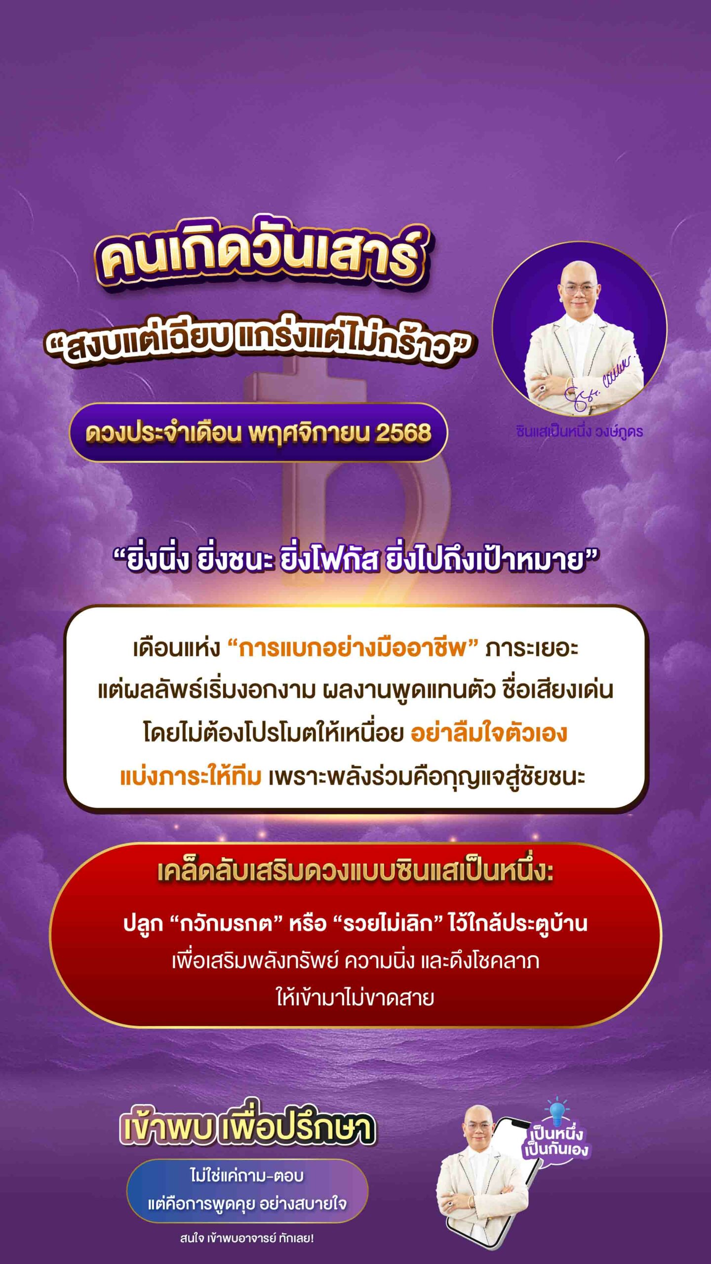 คนเกิดวันเสาร์ – พฤศจิกายน 2568