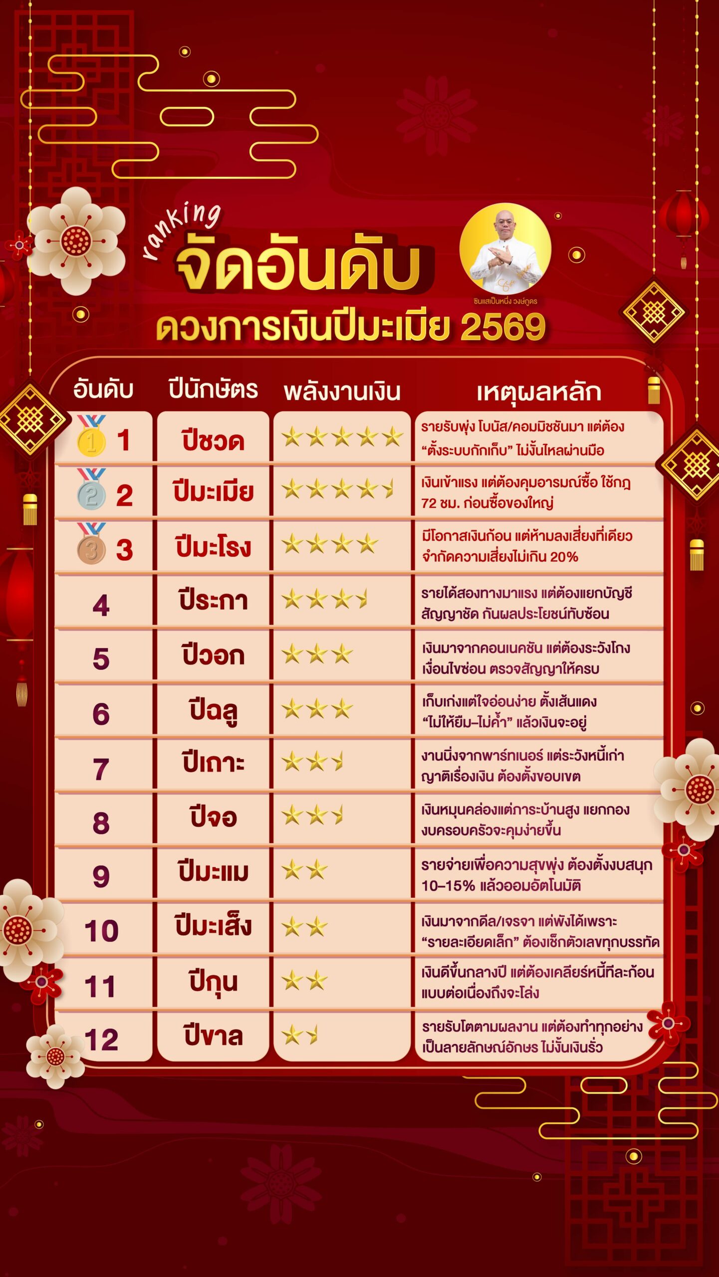 💰✨ จัดอันดับดับ 12 นักษัตร : การเงินปีมะเมีย 2569