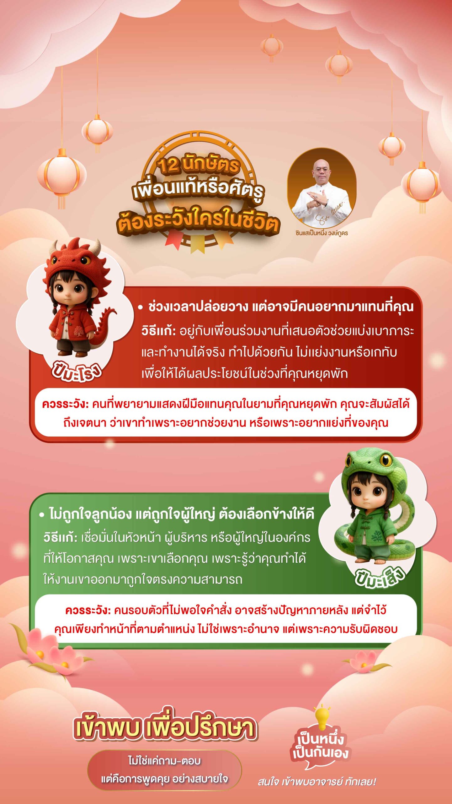 •  ปีมะเส็ง – ไม่ถูกใจลูกน้อง แต่ถูกใจผู้ใหญ่ ต้องเลือกข้างให้ดี