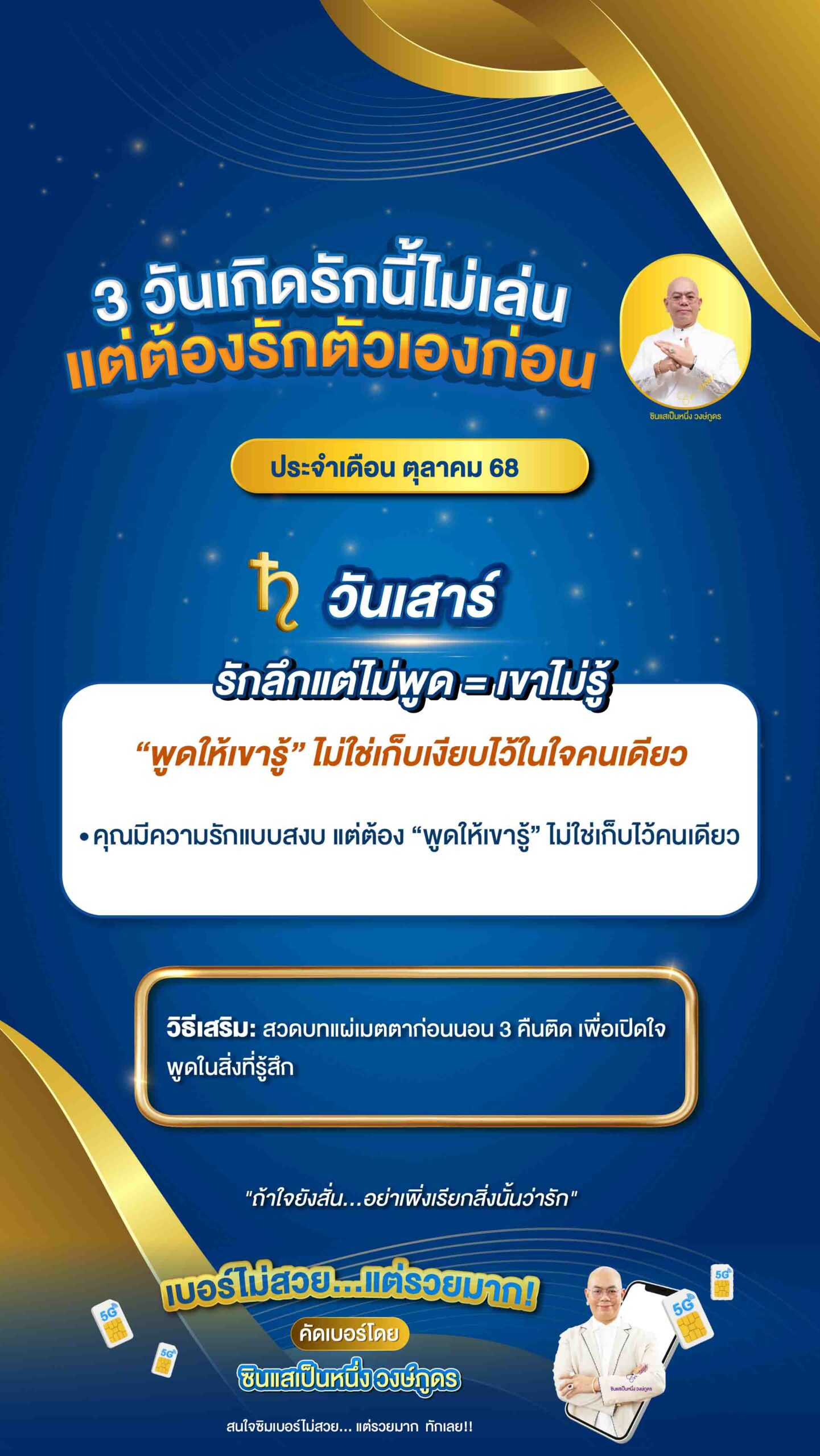 วันเสาร์ — รักลึกแต่ไม่พูด = เขาไม่รู้