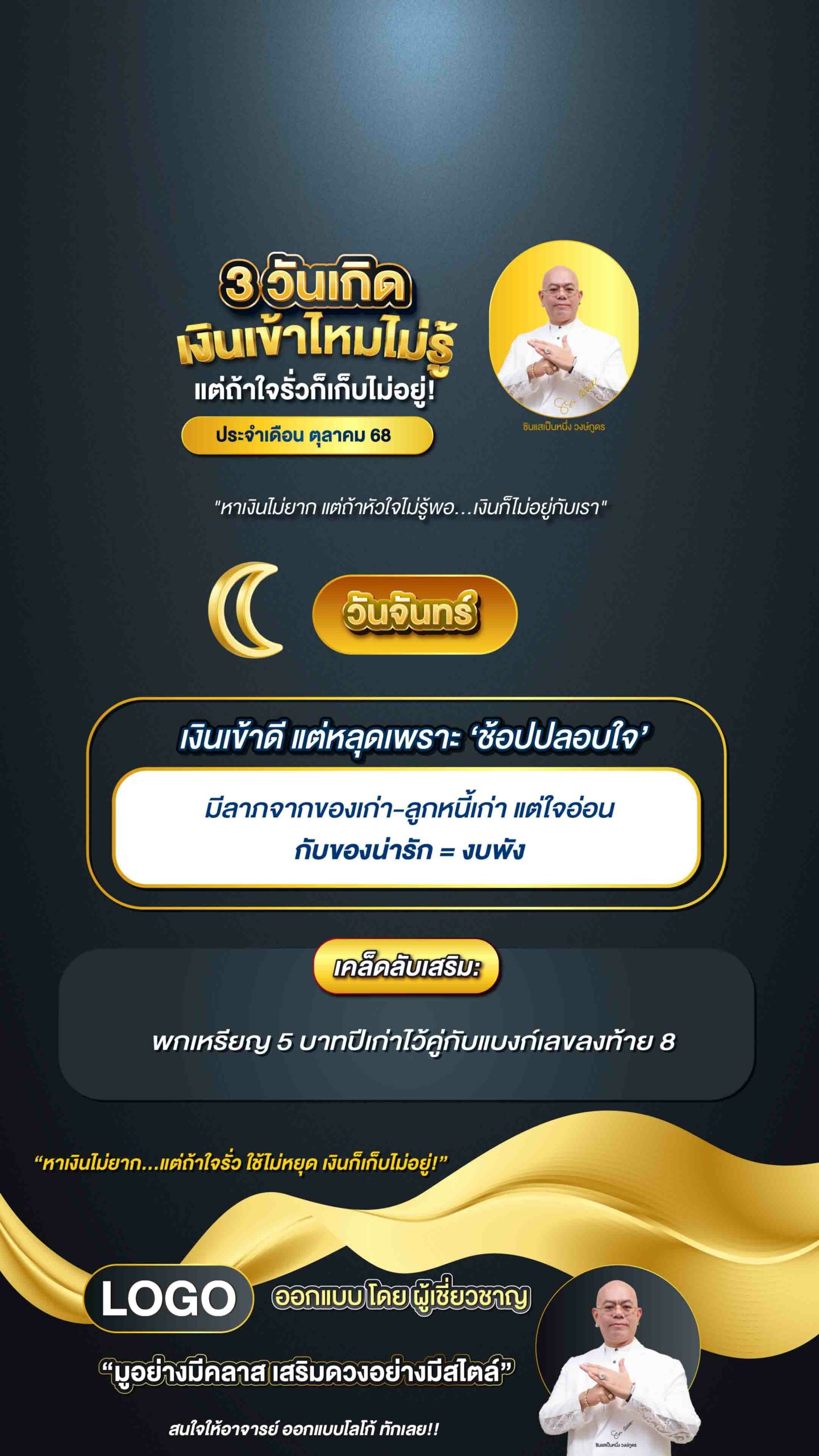 วันศุกร์ — เสน่ห์หาเงินได้ ถ้าไม่หลงตัวเอง งานเสริม งานบิวตี้ งานพรีเซนต์เข้าเต็ม แต่ระวังใช้เงินตามอารมณ์ 💡 เคล็ดลับมู: พกเครื่องเงิน + หินโรสควอตซ์ไว้เสริมการเงินและเมตตา วันจันทร์ — เงินเข้าดี แต่หลุดเพราะ ‘ช้อปปลอบใจ’ มีลาภจากของเก่า-ลูกหนี้เก่า แต่ใจอ่อนกับของน่ารัก = งบพัง 💡 เคล็ดลับมู: พกเหรียญ 5 บาทปีเก่าไว้คู่กับแบงก์เลขลงท้าย 8 วันพุธ — ปากพารวย แต่ต้องปิดให้ทัน การเงินมาจากคำพูด ขาย–เจรจา–ไลฟ์สด ปิดยอดปัง แต่อย่าเผลอคุยจนลดราคาให้ฟรี 💡 เคล็ดลับมู: วางดอกไม้สีชมพูบนโต๊ะทำงานเรียกเมตตา PrevNext